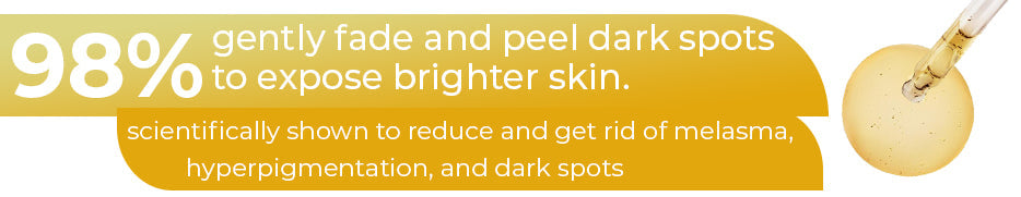 Melanin Correcting Essential Oil has been clinically shown to reduce and eradicate melasma, hyperpigmentation, and dark spots. The acids in the oil gently peel and erase dark spots to reveal more radiant skin. The oil encourages a more equal distribution of pigment throughout the skin's surface by aiding in the breakdown of pre-existing melanin clusters.